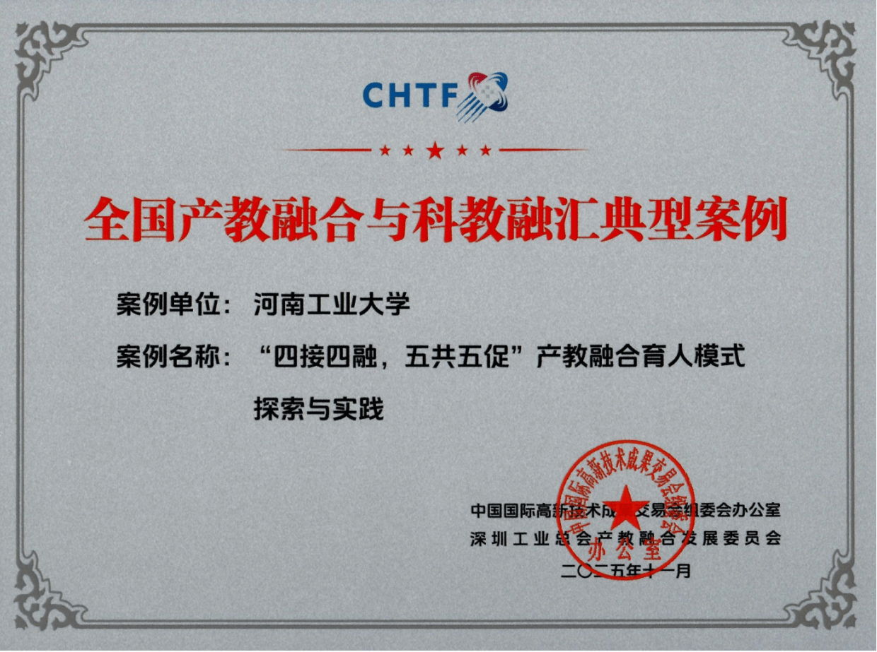 将以此次获奖为契机,持续深化“四接四融,五共五促”模式内涵建设,充分发挥典型案例的示范引领作用,积极分享改革经验,为推动高等教育产教融合高质量发展、服务河南省新一代人工智能产业升级和国家粮食安全战略贡献更大力量!
