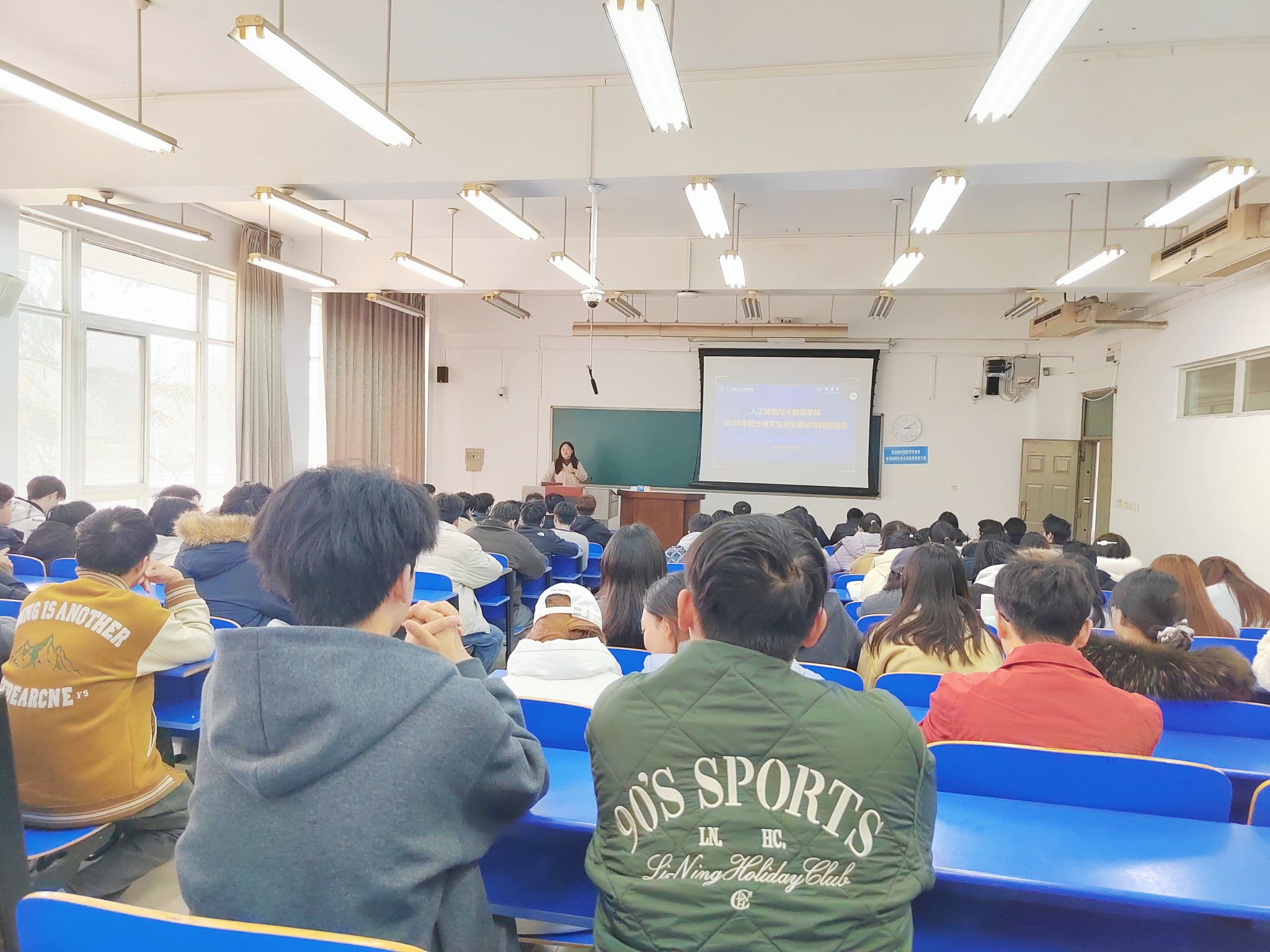 互动交流环节,系主任和辅导员们就同学们关心的专业方向选择、导师联系、跨专业调剂等问题进行了耐心解答,现场气氛热烈。在经验分享环节,成功上岸的惠德垚、李昊翀结合自身备考经历,从复试心态调整、面试问答技巧到调剂系统的操作细节,为在场学弟学妹提供了宝贵经验。