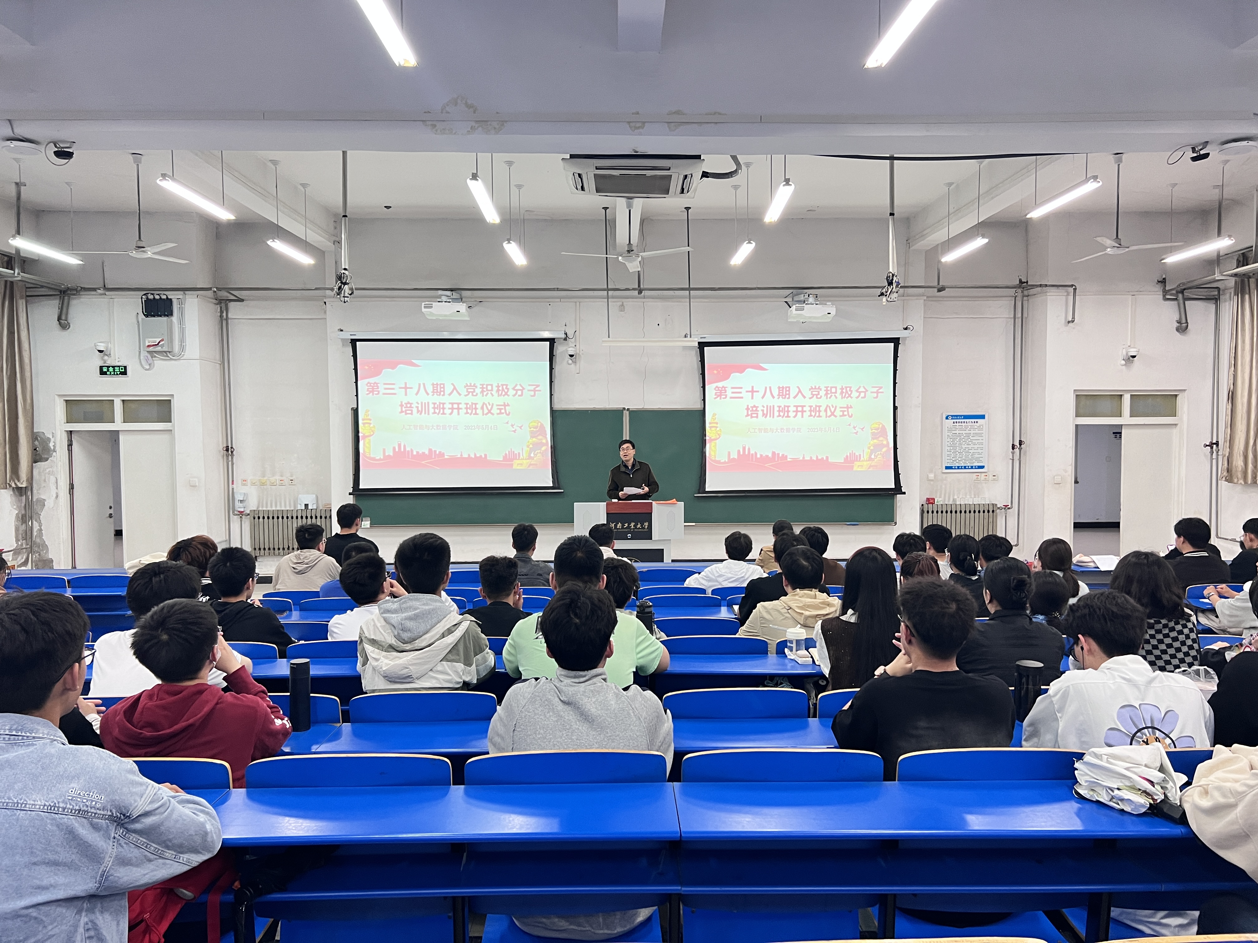 党委书记杜鹏致开幕词。杜书记强调,入党积极分子培训是每一位追求进步的学生的必修课,也是接受党的思想熏陶、理论教育的重要途径。并提出三点要求,第一要讲理想,坚定信念,勇做理论学习的标兵。要从百年党史中感悟马克思主义真理和共产主义信仰的伟大力量,做信念坚定的青年马克思主义者。第二要讲情怀,为民奉献,勇做无私奉献的表率。青年大学生必须要有为民服务情怀,在党和人民最需要的时刻冲得出来、顶得上去。第三要讲本事,提升能力,勇做综合素质突出的标杆。要努力提升理论素质、政治素质和专业本领,坚持理论与实践相结合,做到知行合一。最后他希望同学们能好好珍惜这次难得的学习机会,端正入党动机,提高思想政治觉悟,争取早日加入党组织,成为一名合格的共产党员。
