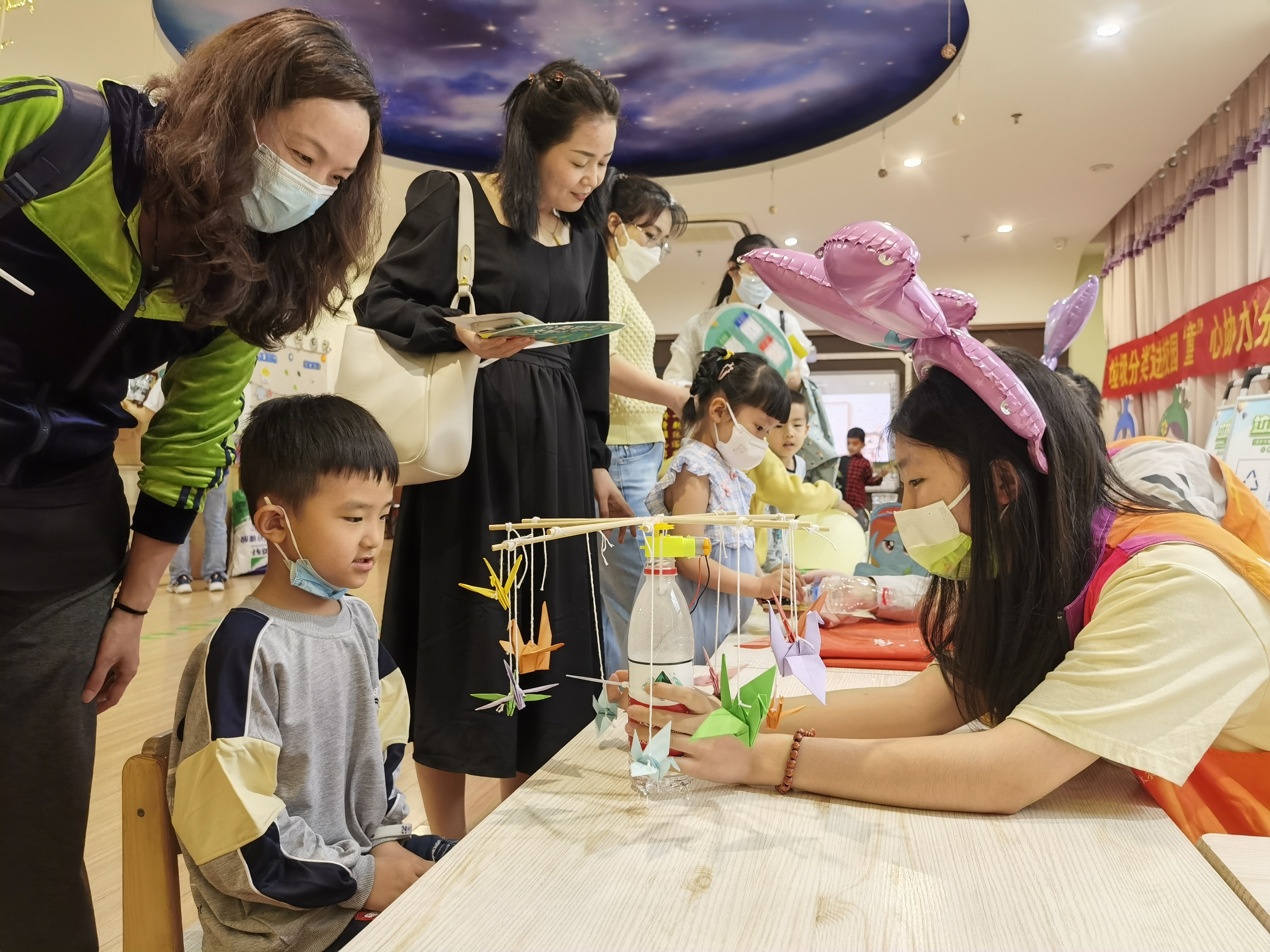 为宣传环保理念,增强公众参与环保活动的积极性,激发小朋友们对变废为宝的兴趣,参与到环保事业中,养成绿色、低碳、环保的生活方式,5月27日,银河国际