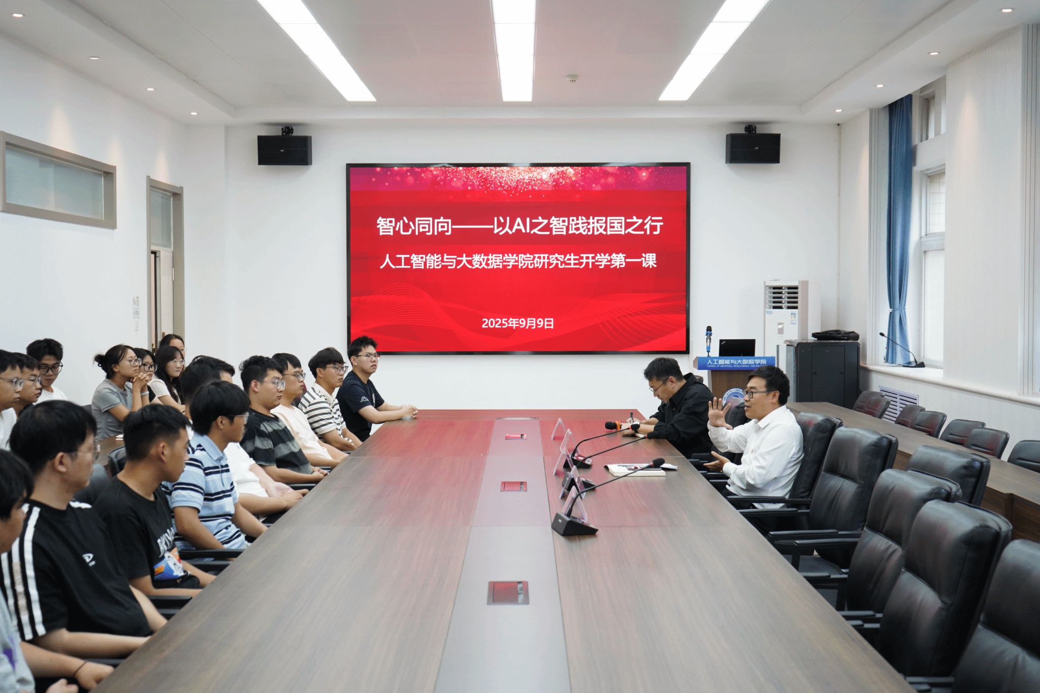 党委书记杜鹏以“智心同向:以AI之智践报国之行”为题为2025级全体研究生集中讲授“开学第一课”。他带领同学们回顾了银河国际