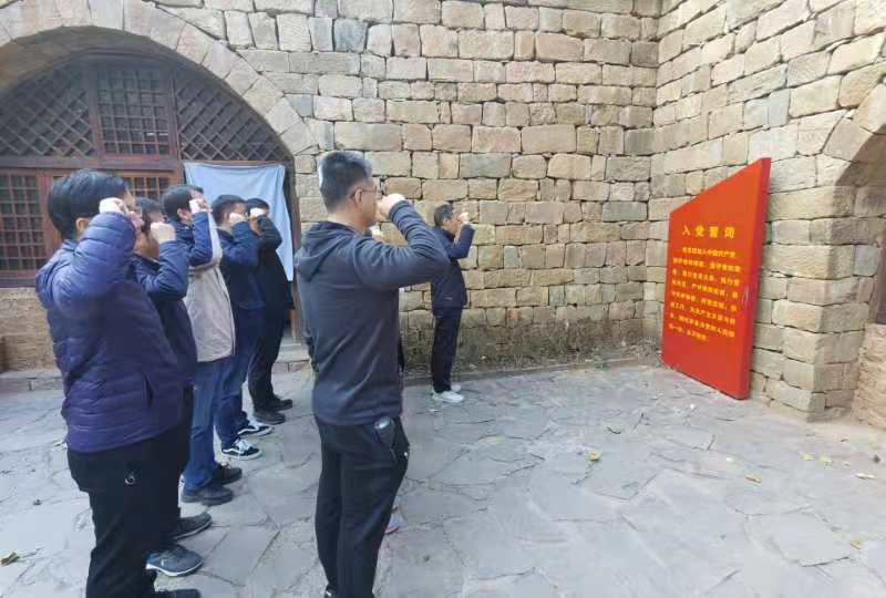 教工党员在党委书记付晓炎的带领下首先参观了朱德出太行展览馆,通过观看展览、聆听现场讲解,深入了解了朱德出太行的历史背景。通过重走朱德出太行小道,体会朱德同志为团结抗战不畏艰险、勇于担当的品行,学习朱德同志无限忠诚、光明磊落的党性。在愚公移山红色教育基地教工党员通过现场体验、聆听讲解详细了解了愚公精神愚与智、一与众、内与外、当代与未来、人与自然五个层面的关系,了解了愚公精神上升为民族精神的历史背景及愚公精神的当代內涵。在教育基地付晓炎带领教工党员面向党旗庄严宣誓,重温入党誓词,表达了发扬愚公精神建功新时代的决心。
