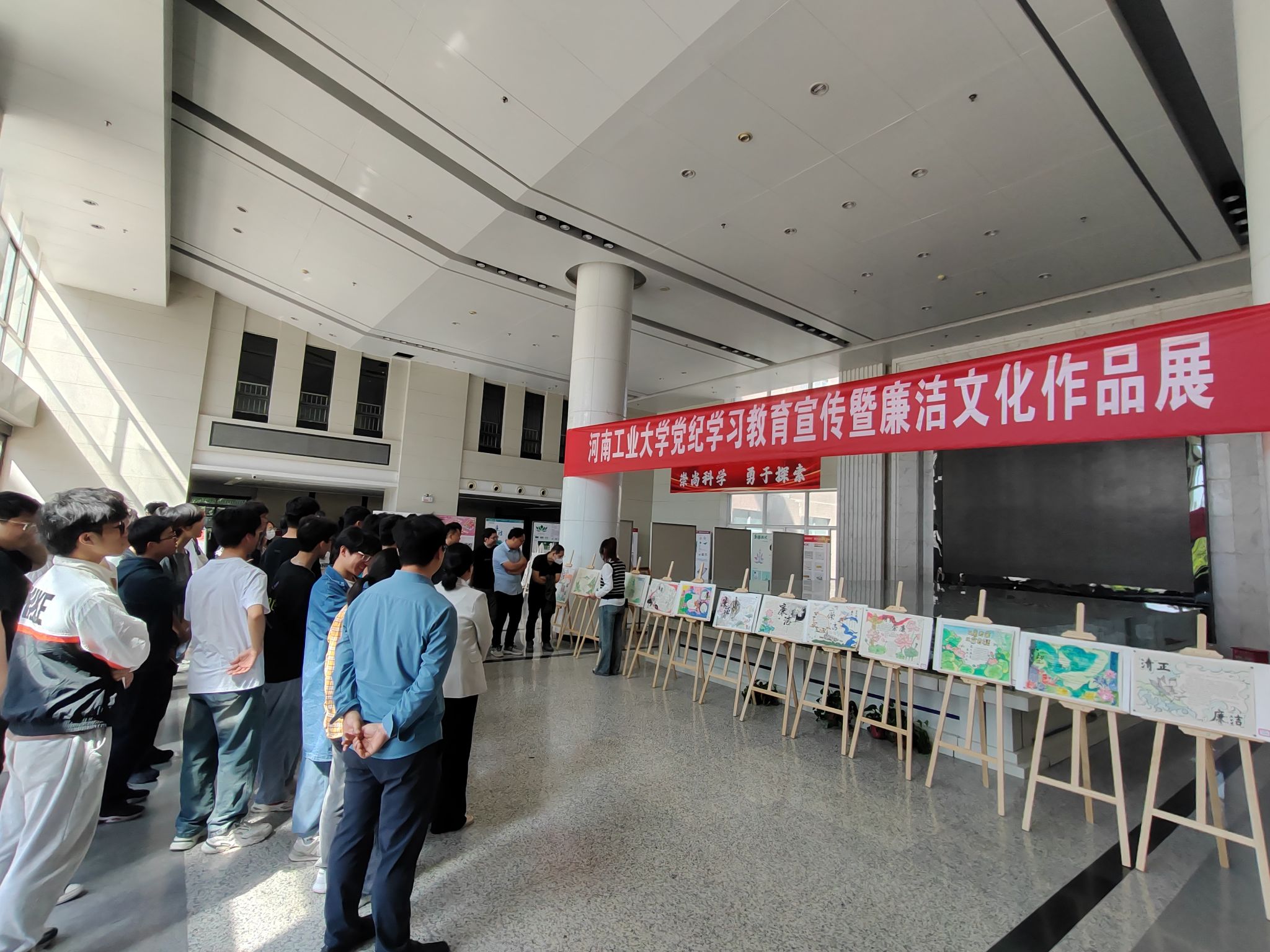 党委组织师生党员前往行政楼二楼大厅参观党纪学习教育宣传暨廉洁文化作品展。