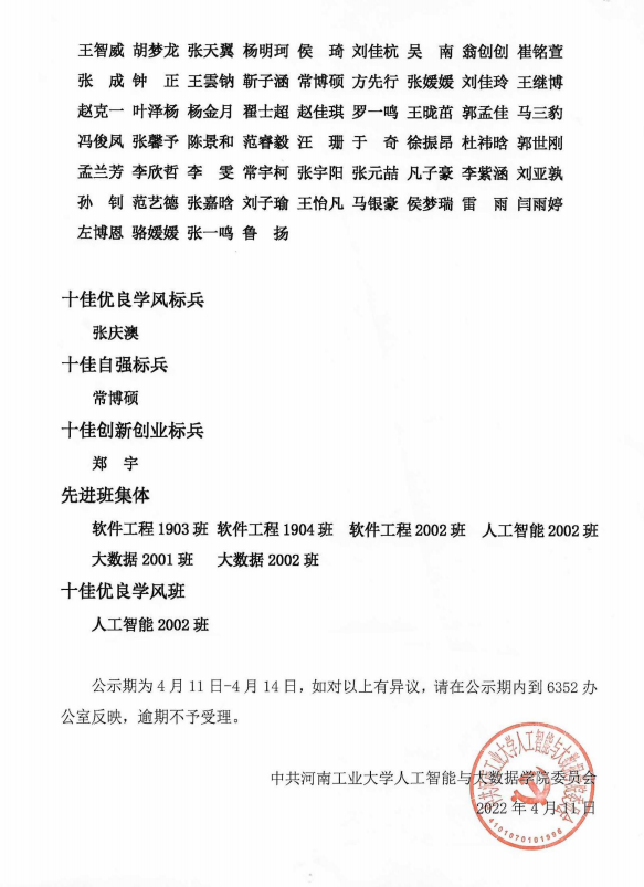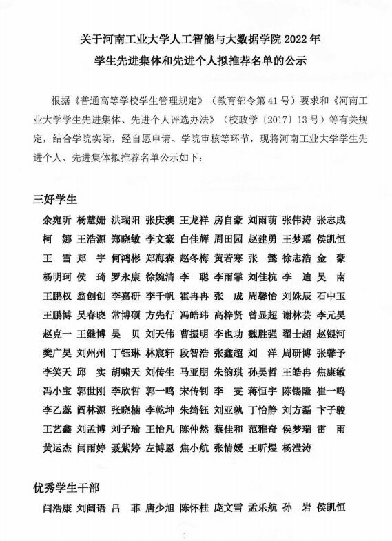 关于银河国际 2022年学生先进集体和先进个人拟推荐名单的公示