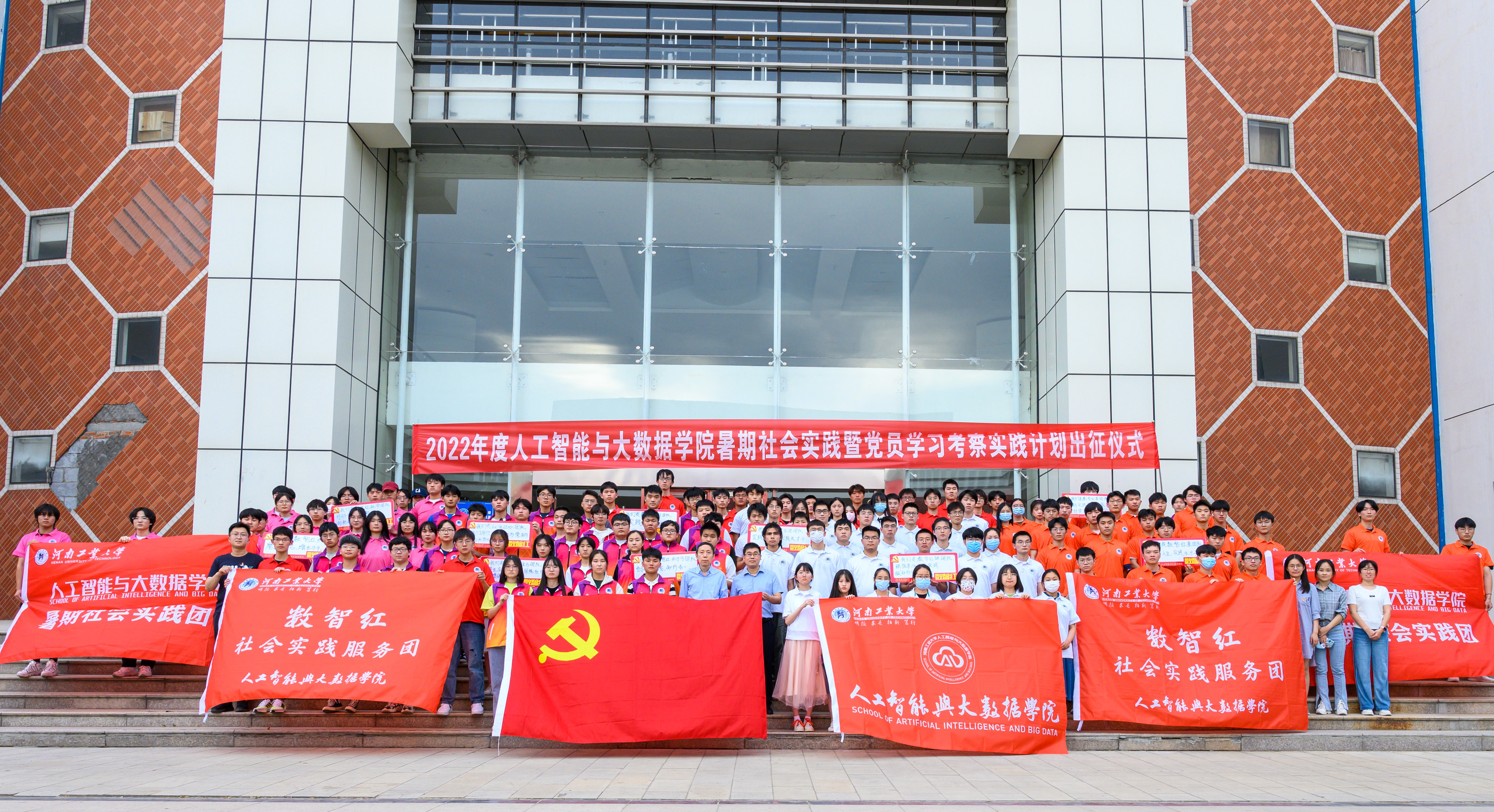 2022年暑期社会实践暨党员学习考察实践计划出征仪式在4号楼门前举行。银河国际