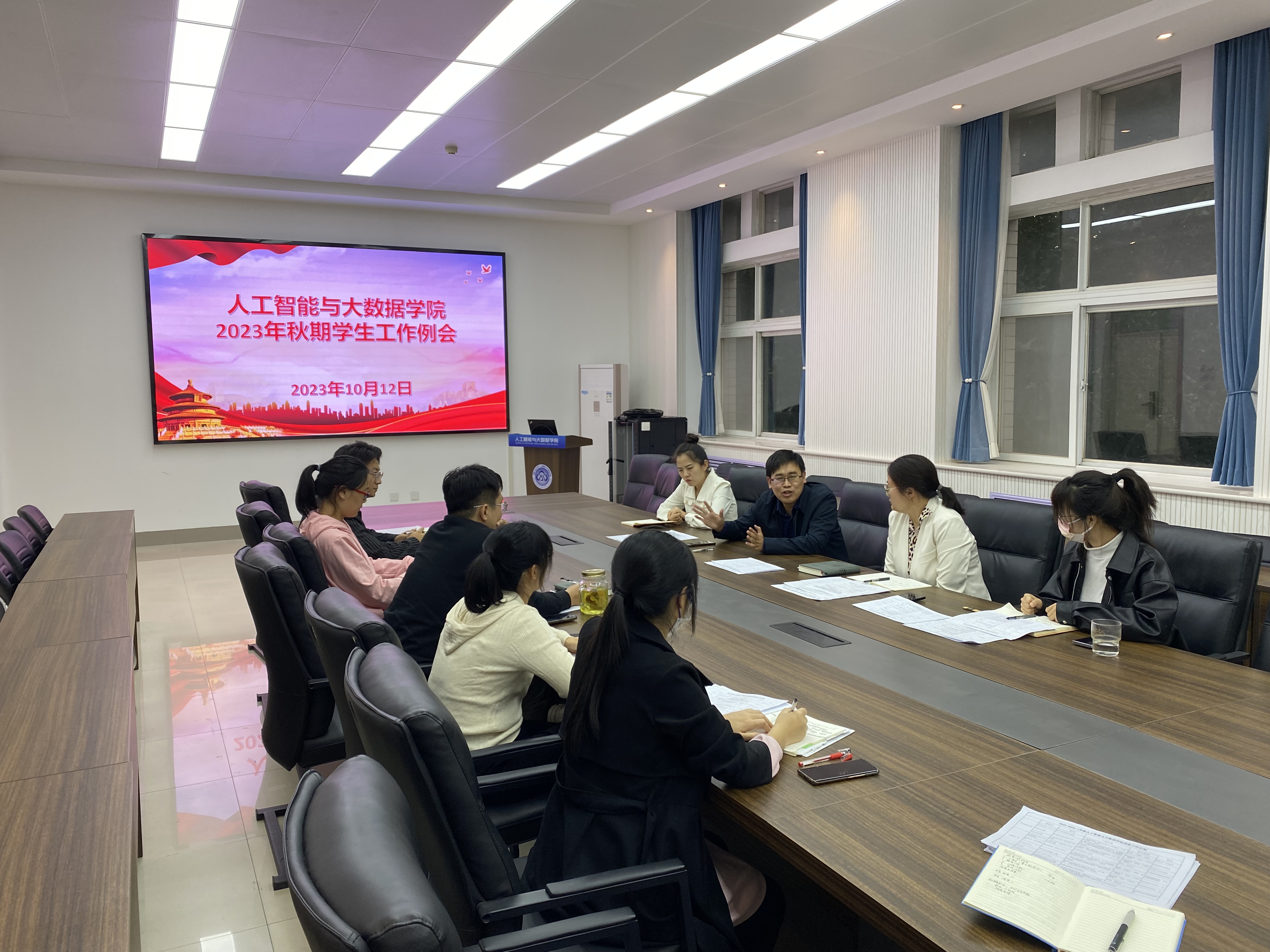 在6369会议室召开10月份学生工作例会,对学生工作进行安排部署。院党委书记杜鹏,党委副书记薛运侠,全体辅导员参加会议,会议由薛运侠主持。