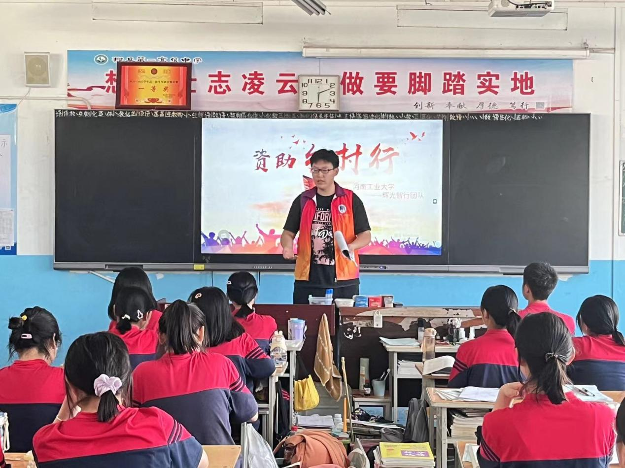 辉光智行实践团队赴河南省平顶山市郏县第一高级中学,开展了“资助政策乡村行,助力学子圆梦路”为主题的资助政策宣传活动。