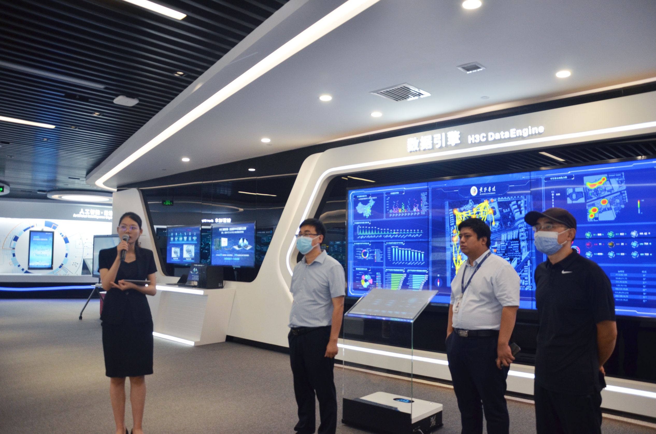 26日上午在新华三技术有限公司教育事业部经理王东华陪同下,大家参观了新华三智能展厅及紫光计算机检测认证实验室,随后双方进行了座谈。樊超首先代表银河国际