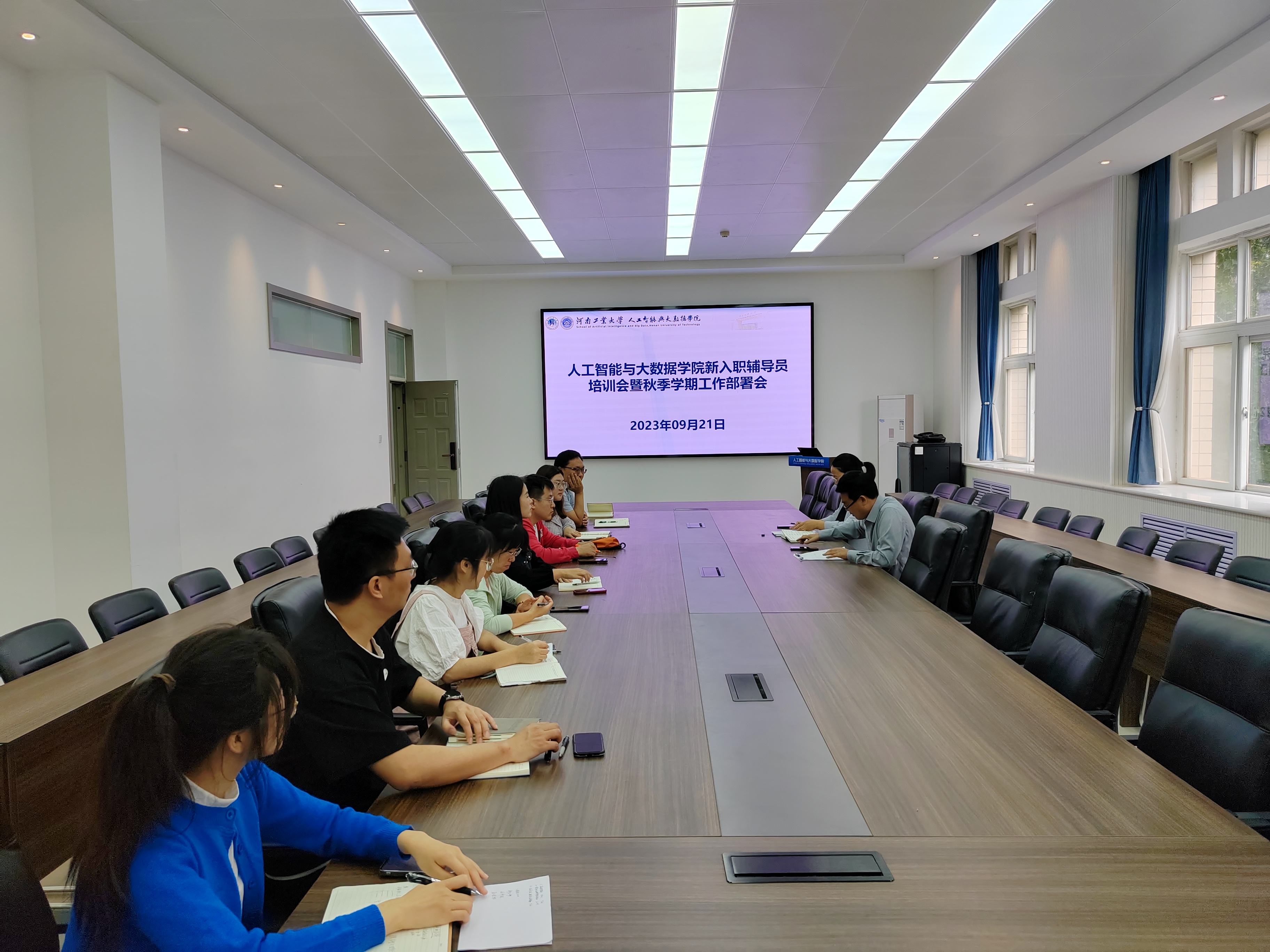 近期有关学生工作的主要会议精神,并对安全稳定、新生工作、学风建设、奖助工作、就业考研、队伍建设、教学评估等相关重点工作做出具体安排,大家一起对本学期重点和难点工作进行了研讨交流。