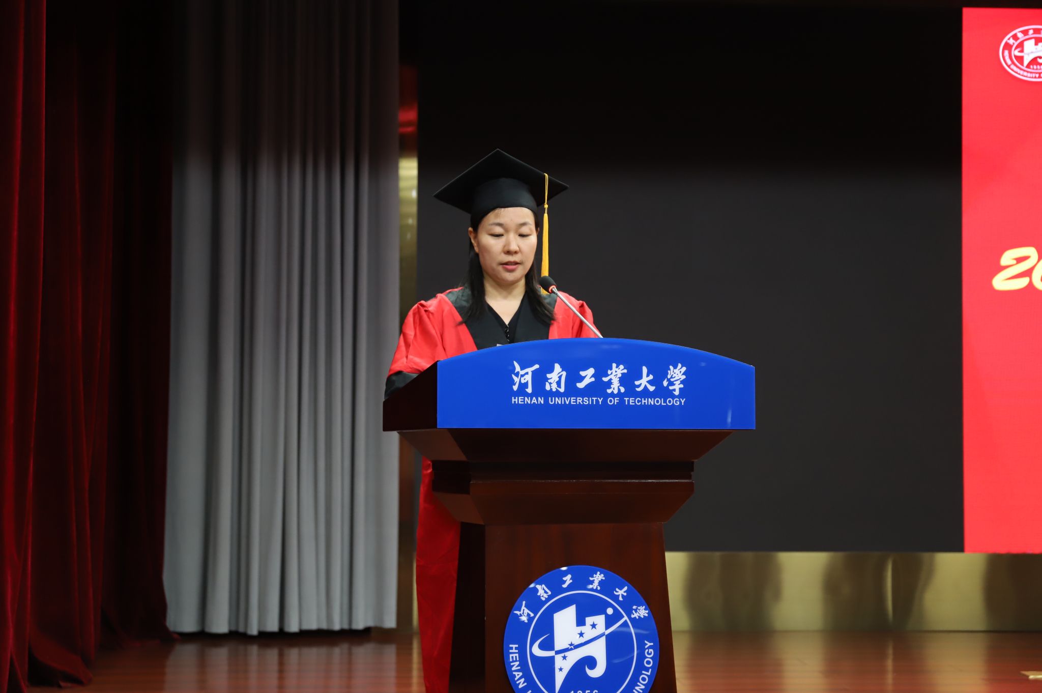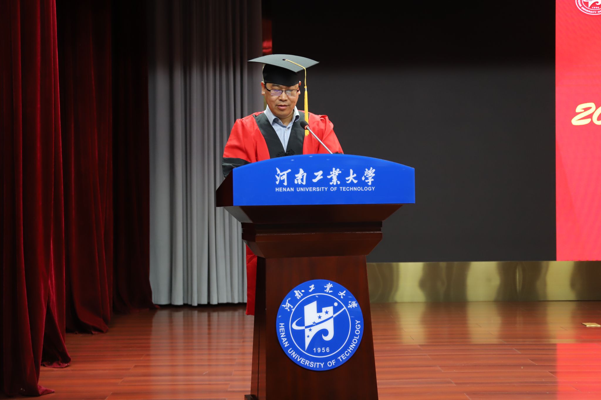 四年来共同的成长经历和发展历程,并对毕业生提出四点期望:第一,心怀家国,勇于担当奉献,为国家的发展建设做出贡献。第二,爱校荣校,做高质量校友,在各自工作岗位上建功立业。第三,勤学常思,提升能力本领,在促进产业升级和技术革新上创造非凡业绩。第四,修身立德,锤炼高尚品格,面对困难与挫折乐观向善、勇毅前行。