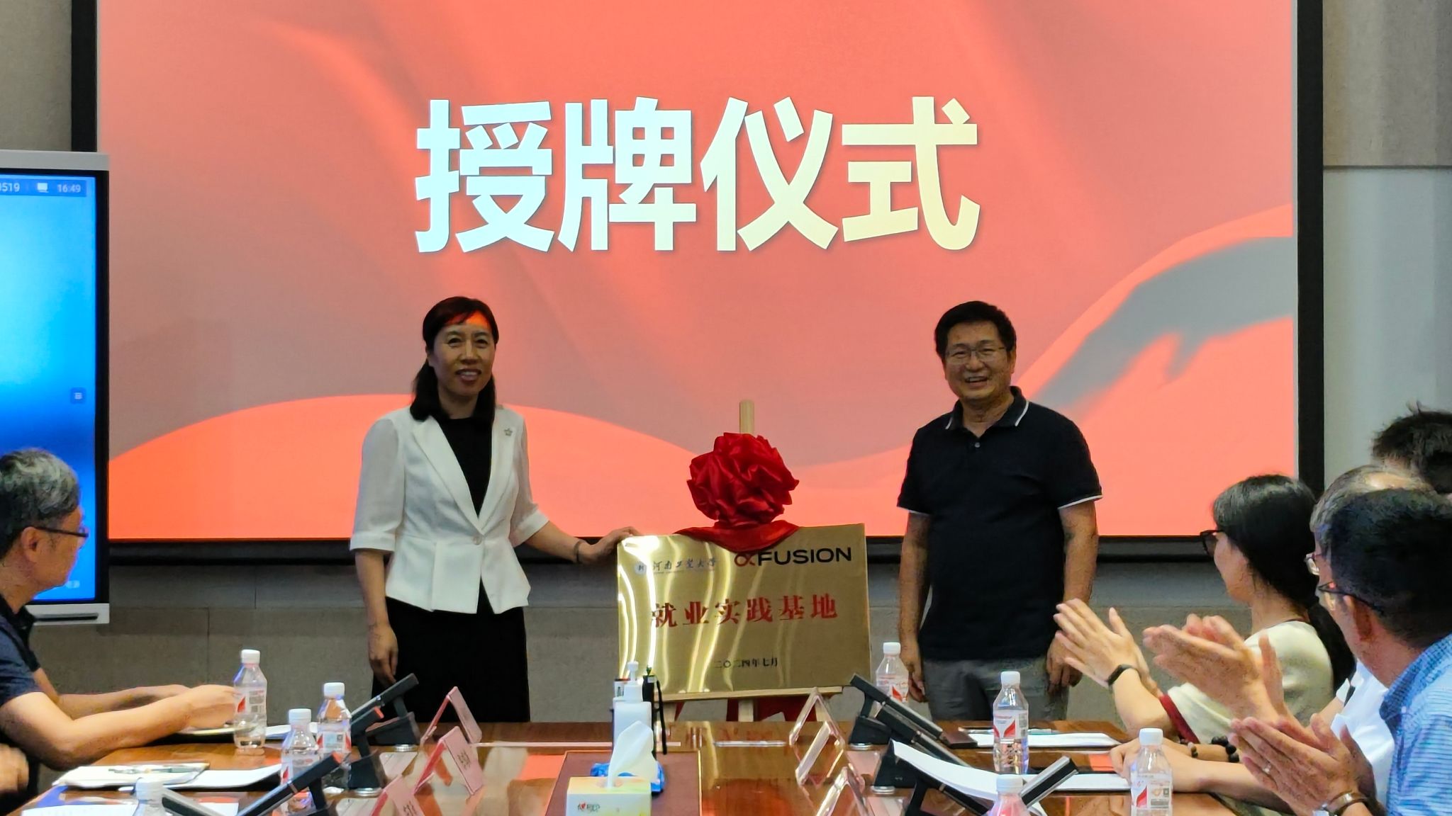 最后,杜鹏与超聚变代表签订了就业实习基地协议书,白艳红与徐元君为“就业实践基地”揭牌。