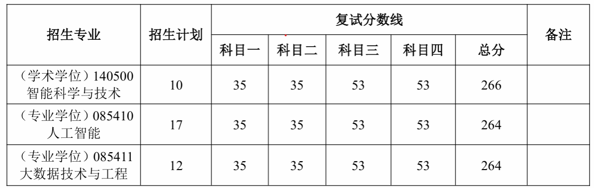 注:(学术学位)140500 智能科学与技术 10人含复杂性科学研究院专项计划2人,(专业学位)085410人工智能 17人含复杂性科学研究院专项计划2人。